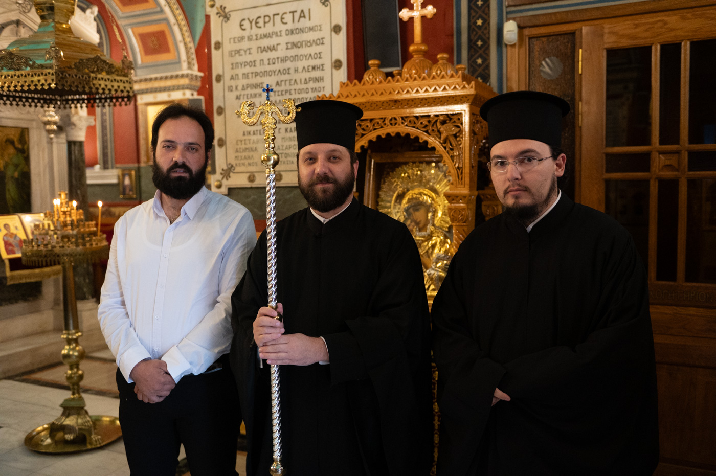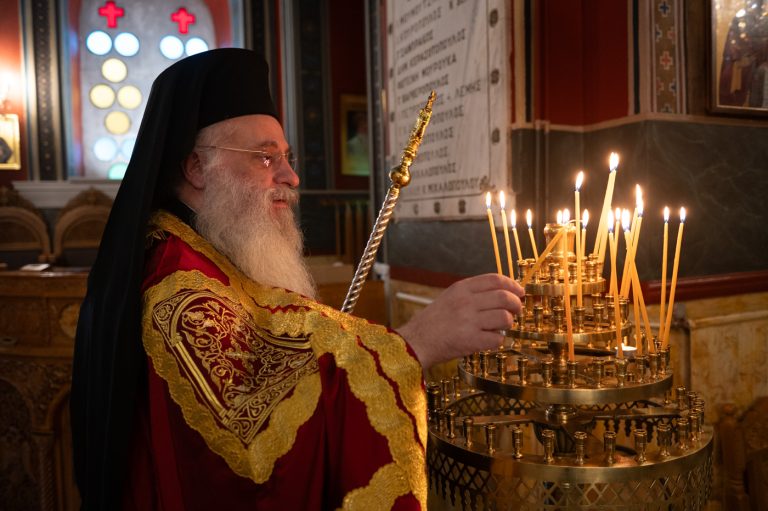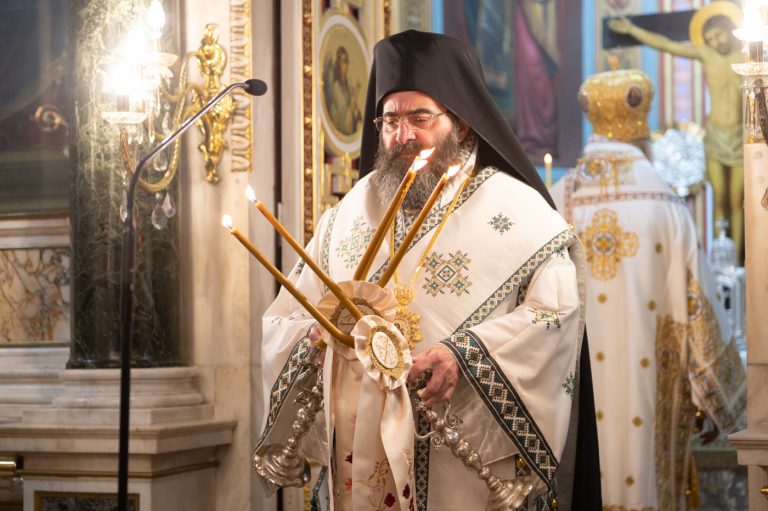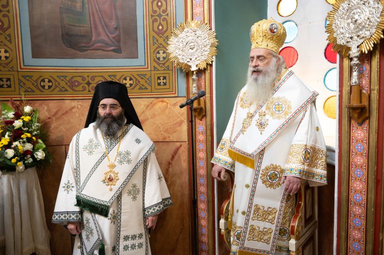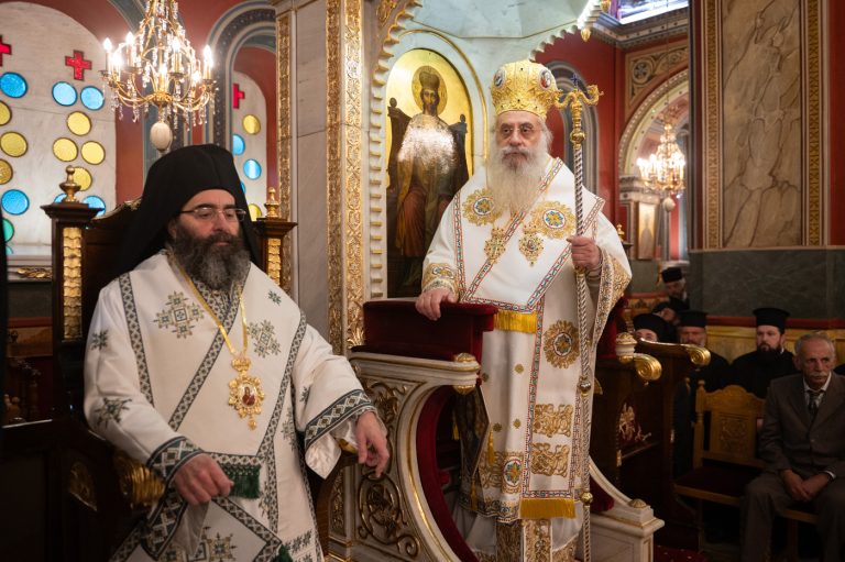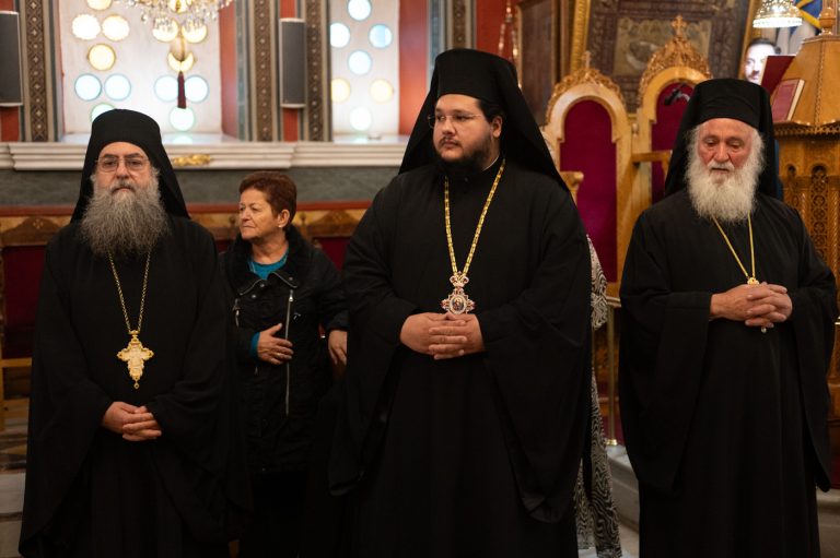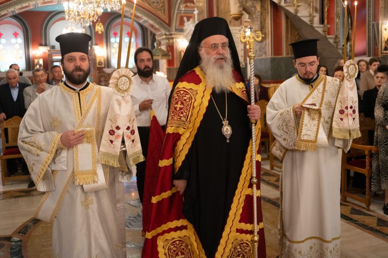Επίσης, αναφέρθηκε στην σημερινή Επέτειο από της ενθρονίσεως του Μητροπολίτη κ. Επιφανίου και σημείωσε την έως σήμερα πορεία του από την ημέρα εκείνη λέγοντας, ότι η ενθρόνιση ενός Επισκόπου είναι γεγονός υψηλής θεολογικής σημασίας, διότι δεν πρόκειται για διοικητικό διορισμό, αλλά για αποστολή που φέρει το βάρος του Σταυρού και τη χάρη της Αναστάσεως, κατά τον Άγιο Ιγνάτιο τον Θεοφόρο. Συνάμα, τόνισε ότι ο Μητροπολίτης αποτελεί λιμάνι ελπίδας και παρηγοριάς, αλλά και σταθερή πυξίδα για την τοπική κοινωνία. “Προσήλθατε ως Επίσκοπος σε αυτή την Μητρόπολη, όχι για να υπηρετηθείτε, αλλά για να διακονήσετε με αυταπάρνηση, ταπείνωση και πατρική αγάπη”. Κλείνοντας τον λόγο του, ευχήθηκε τα έτη του να είναι πολλά, ειρηνικά, καρποφόρα, ο Κύριος να τον στερεώνει και οι Άγιοι της τοπικής Εκκλησίας να είναι συνοδοιπόροι του.