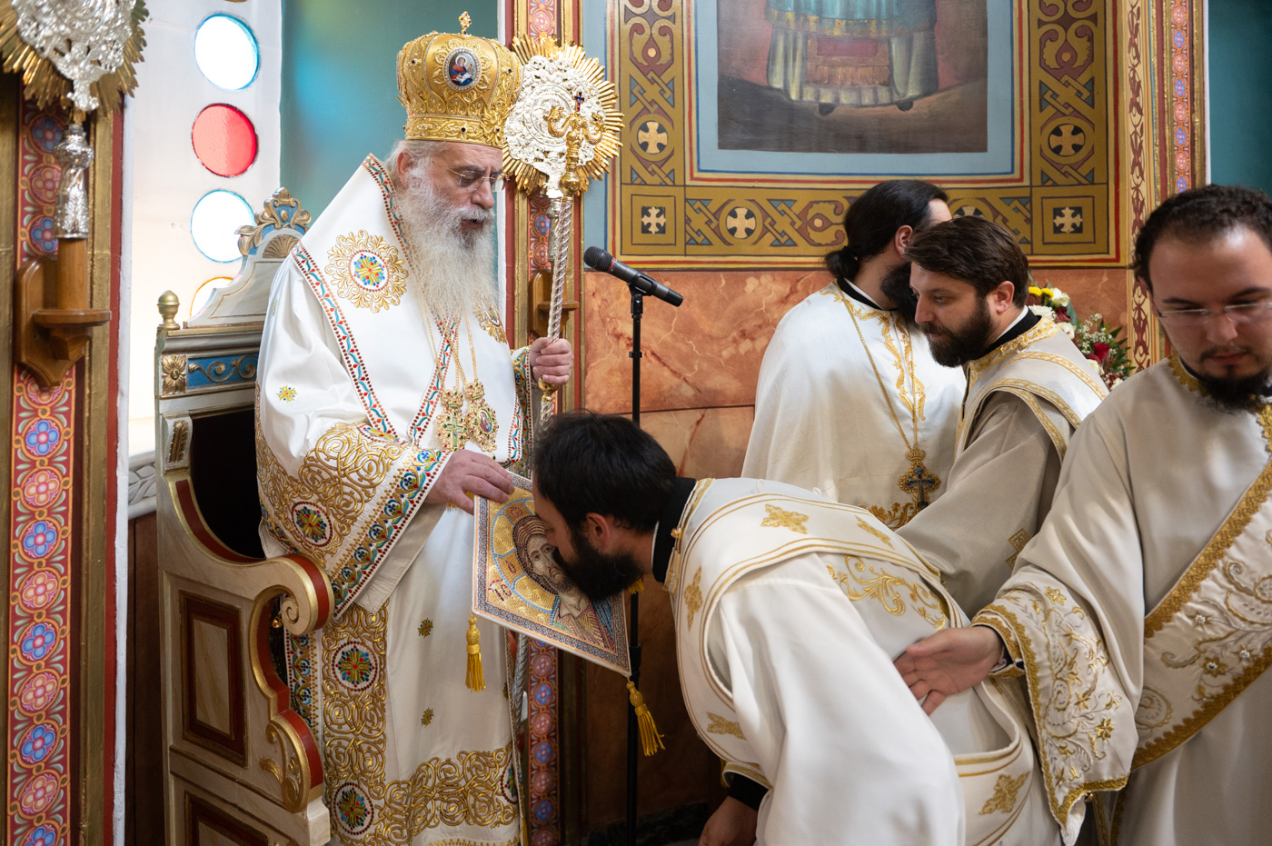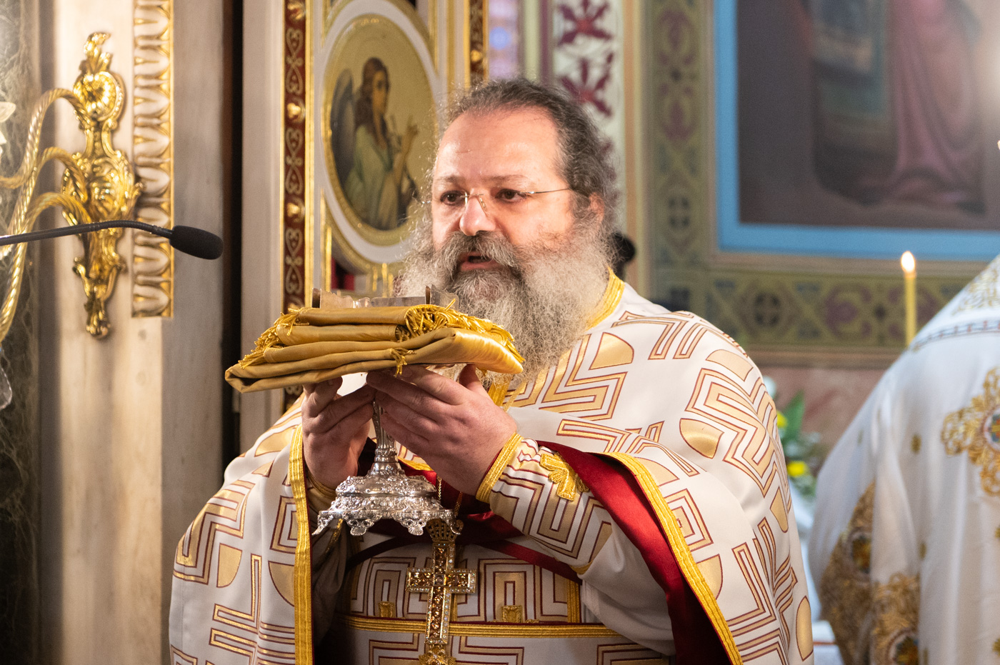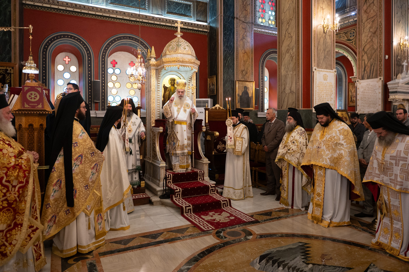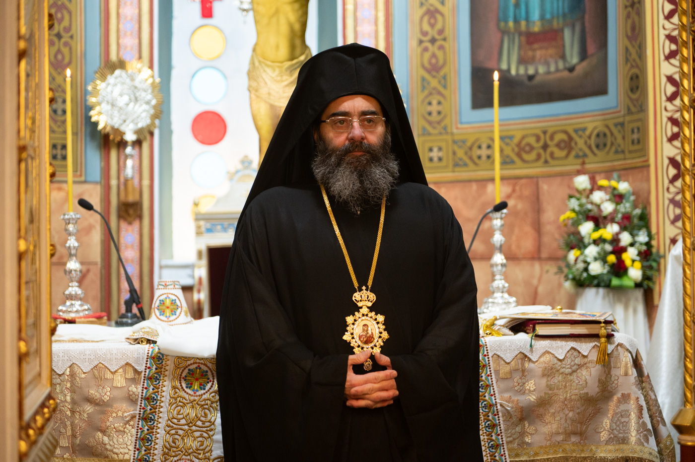 Επίσης, αναφέρθηκε στην σημερινή Επέτειο από της ενθρονίσεως του Μητροπολίτη κ. Επιφανίου και σημείωσε την έως σήμερα πορεία του από την ημέρα εκείνη λέγοντας, ότι η ενθρόνιση ενός Επισκόπου είναι γεγονός υψηλής θεολογικής σημασίας, διότι δεν πρόκειται για διοικητικό διορισμό, αλλά για αποστολή που φέρει το βάρος του Σταυρού και τη χάρη της Αναστάσεως, κατά τον Άγιο Ιγνάτιο τον Θεοφόρο. Συνάμα, τόνισε ότι ο Μητροπολίτης αποτελεί λιμάνι ελπίδας και παρηγοριάς, αλλά και σταθερή πυξίδα για την τοπική κοινωνία. “Προσήλθατε ως Επίσκοπος σε αυτή την Μητρόπολη, όχι για να υπηρετηθείτε, αλλά για να διακονήσετε με αυταπάρνηση, ταπείνωση και πατρική αγάπη”. Κλείνοντας τον λόγο του, ευχήθηκε τα έτη του να είναι πολλά, ειρηνικά, καρποφόρα, ο Κύριος να τον στερεώνει και οι Άγιοι της τοπικής Εκκλησίας να είναι συνοδοιπόροι του.