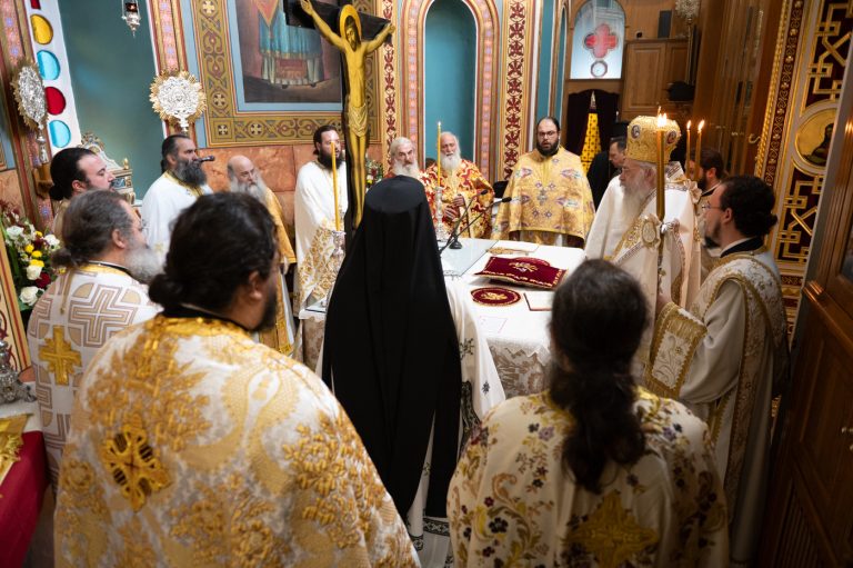 Τον Όρθρο και την Θεία Λειτουργία τέλεσε ο Σεβ. Μητροπολίτης Μαντινείας και Κυνουρίας κ. Επιφάνιος, συλλειτουργούντος του Θεοφιλ. Επισκόπου Τεγέας κ. Θεοκλήτου.