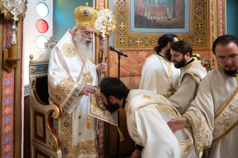 Κατά την διάρκεια της Θείας Λειτουργίας ο Μητροπολίτης κ. Επιφάνιος προέβη στην εις Διάκονον Χειροτονίαν του ευλαβεστάτου κ. Αδριανού Γκολέμη, ο οποίος έλκει την καταγωγή του από τον οικισμό Παναρίτη Αργολίδας.