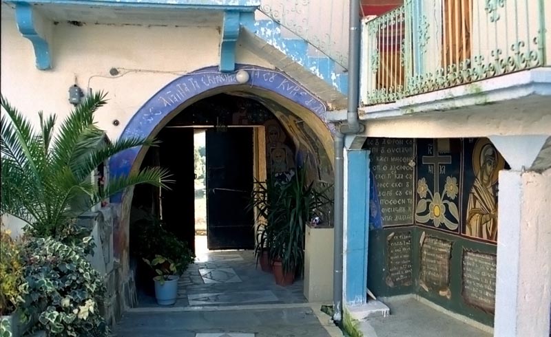 Πάνω ἀπό τήν κύρια εἴσοδο τῆς Μονῆς, στήν ἀνατολική πλευρά, ὑπάρχει ἐντοιχισμένη πλάκα μέ τό χάραγμα: