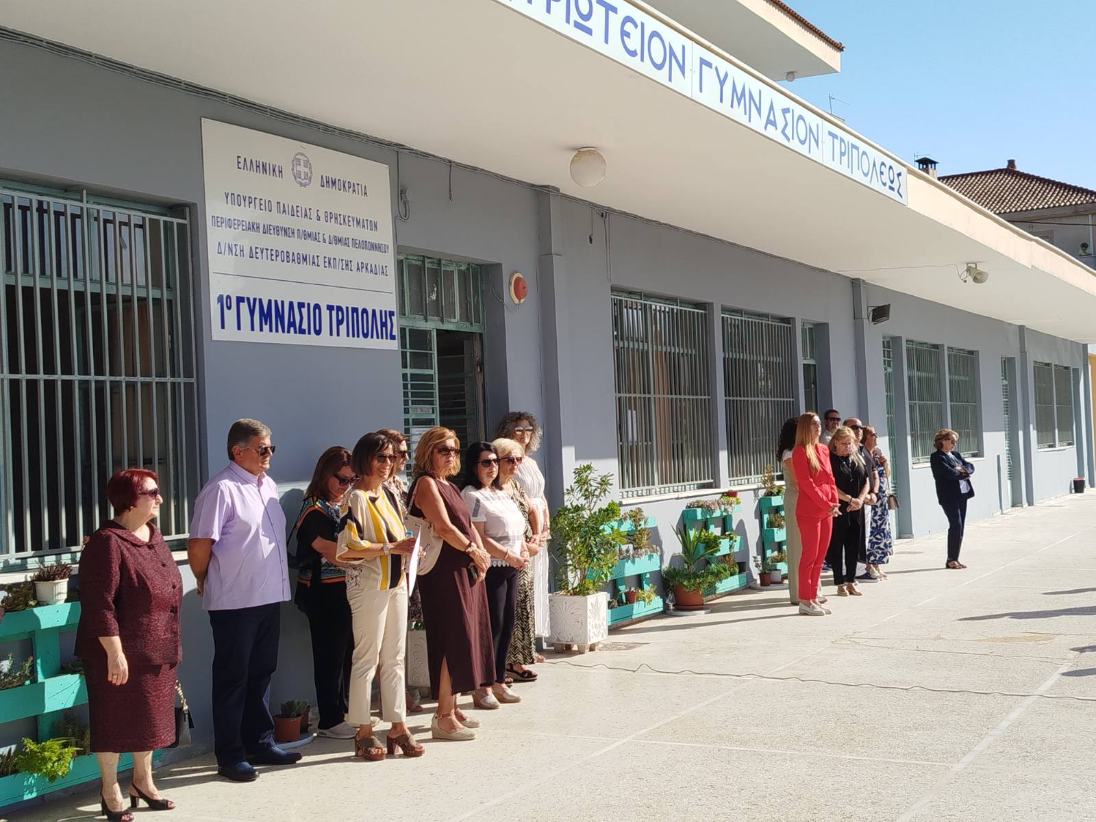 Παρέστησαν ο Υφυπουργός Παιδείας κ. Βλάσης, ο Αντιπεριφερειάρχης Αρκαδίας κ. Μανδρώνης, ο Δήμαρχος Τρίπολης κ. Τζιούμης και οι Προϊστάμενοι της Πρωτοβάθμιας και Δευτεροβάθμιας Εκπαίδευσης Αρκαδίας.
