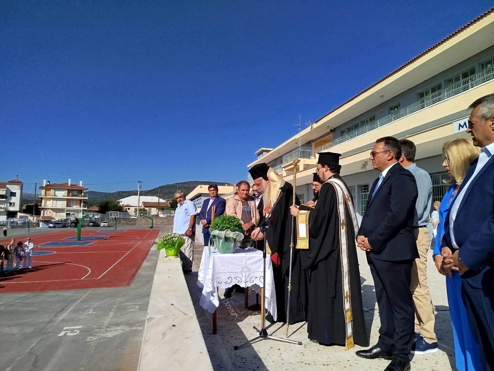 Ο Μητροπολίτης κ. Επιφάνιος αφού τέλεσε τους αγιασμούς ευχήθηκε στους μαθητές και εκπαιδευτικούς καλή χρονιά, με υγεία, δύναμη και φωτισμό.
