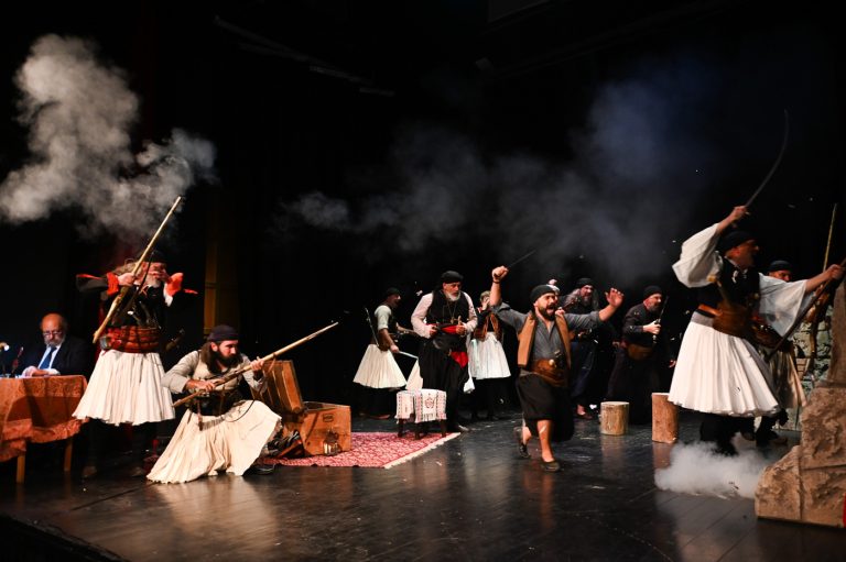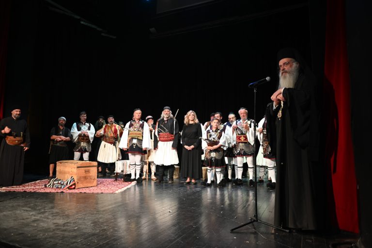 Το απόγευμα, στα πλαίσια των επετειακών εκδηλώσεων στο Μαλλιαροπούλειο Θέατρο Τρίπολης και υπό την αιγίδα της Ιεράς Μητροπόλεως Μαντινείας και Κυνουρίας, πραγματοποιήθηκε εκδήλωση για τα 200 χρόνια από την Έξοδο του Μεσολογγίου με τίτλο: “Η Έξοδος του Μεσολογγίου μέσα από το πανηγύρι του Αη – Συμιού”