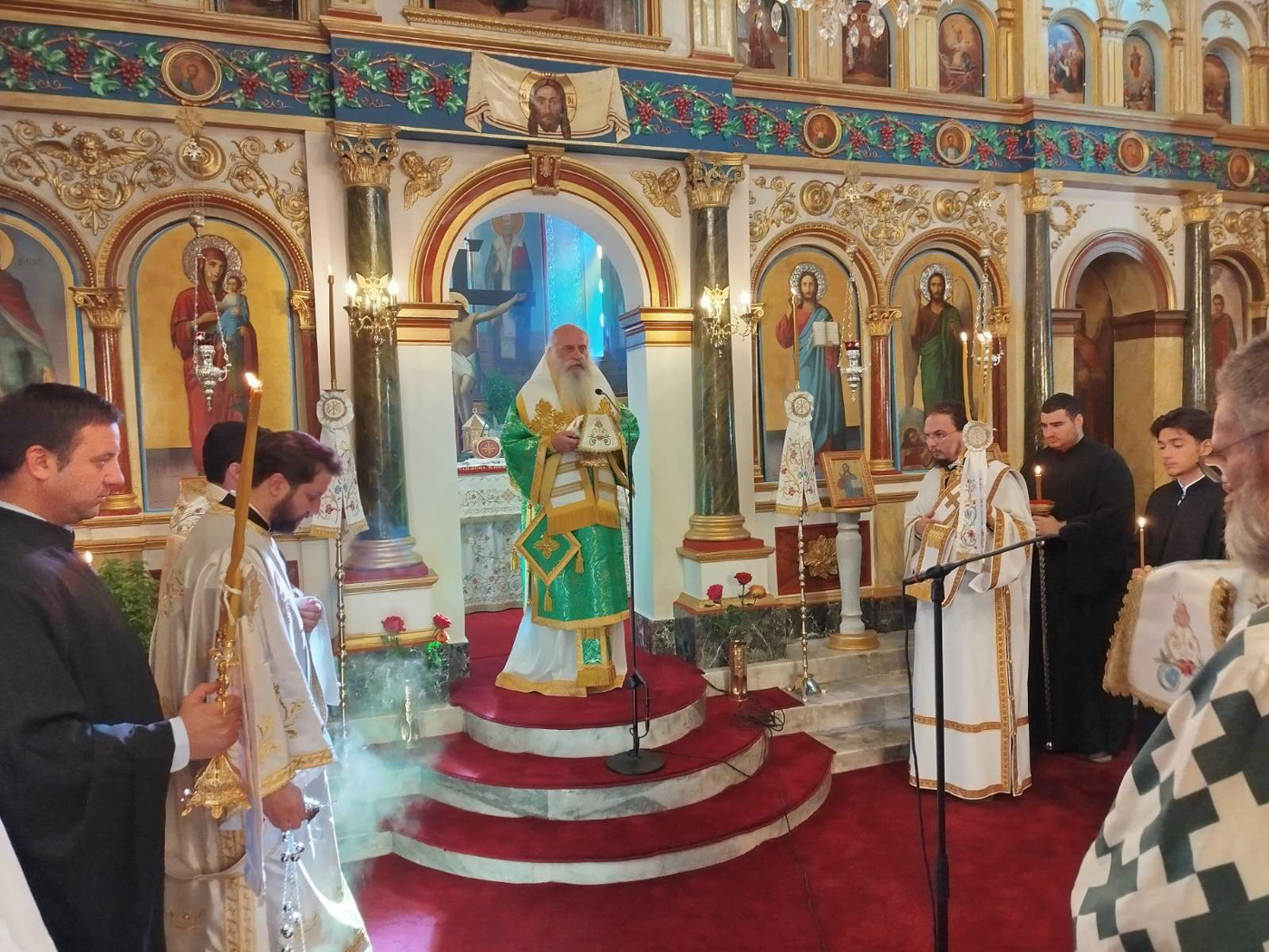 Του Όρθρου και της Αρχιερατικής Θείας Λειτουργίας προέστη ο Σεβασμιώτατος Μητροπολίτης Μαντινείας και Κυνουρίας κ. Επιφάνιος, πλαισιούμενος από τους Εφημερίους του Ι. Ναού και τους Διακόνους της Μητροπόλεως.